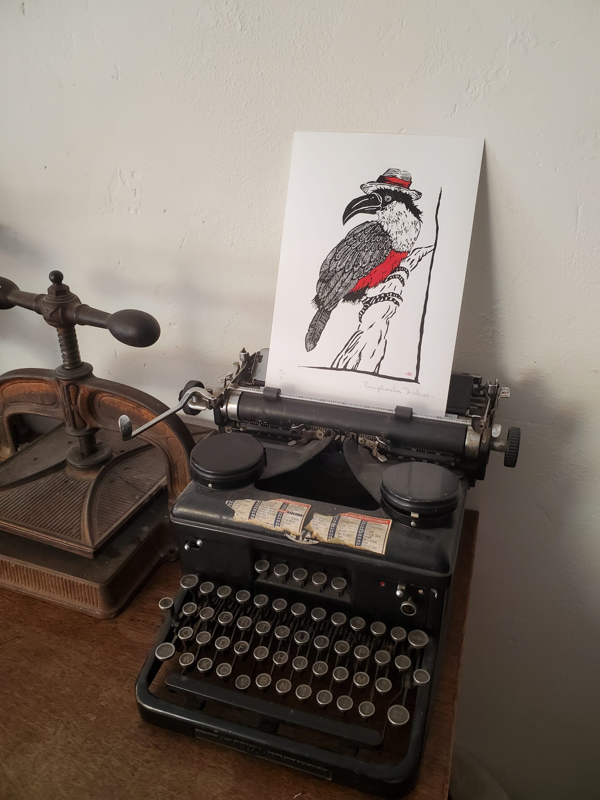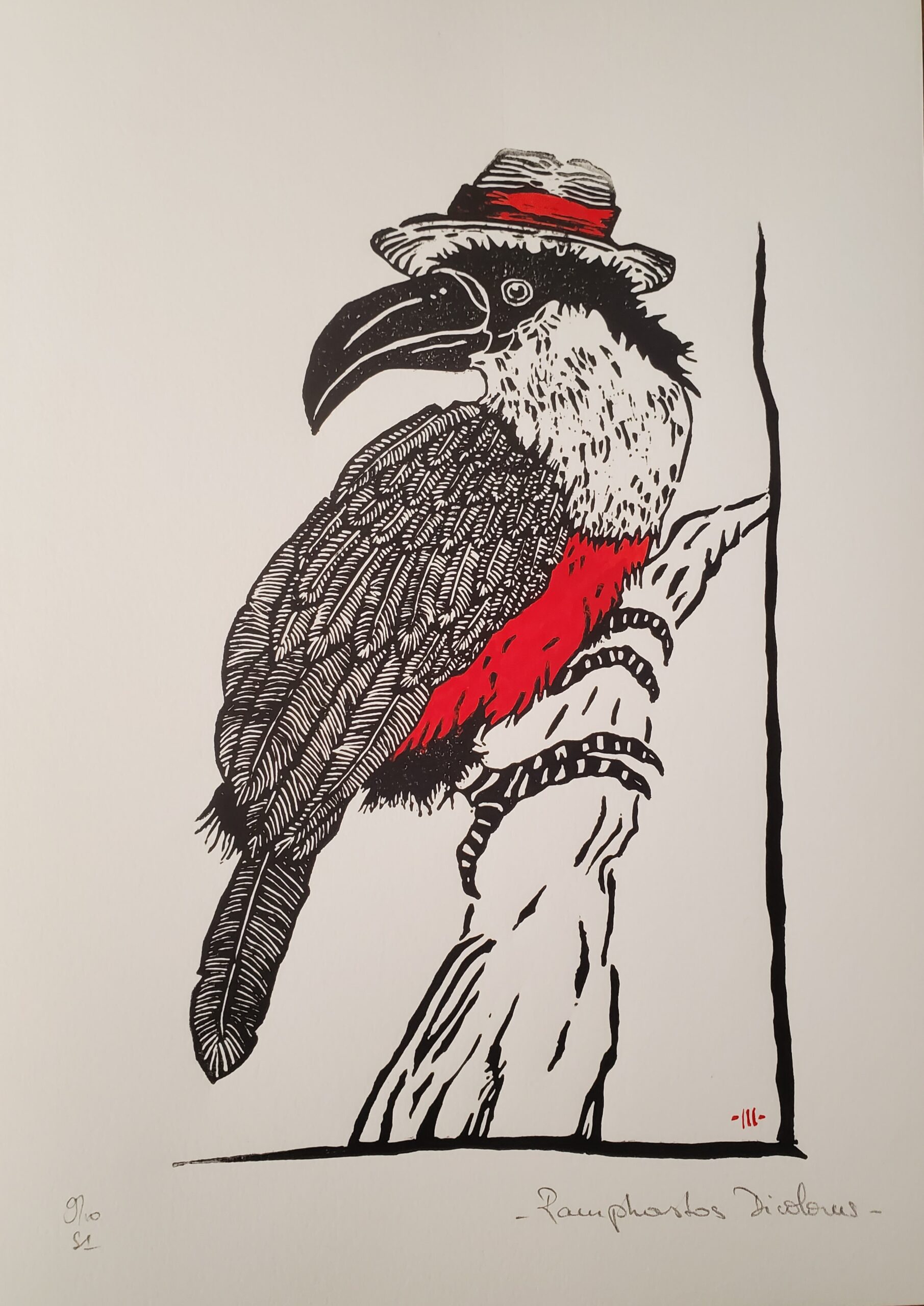 Linogravure et aquarelle